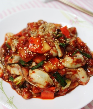 겨울철에 맛이 좋은 굴을 초고추장에 버무린 굴 무침은 상큼하면서도 싱싱한 맛이 소주와 잘 어울립니다. 신선한 굴의 맛이 소주의 향과 조화를 이루어 깔끔한 맛을 더해줍니다.