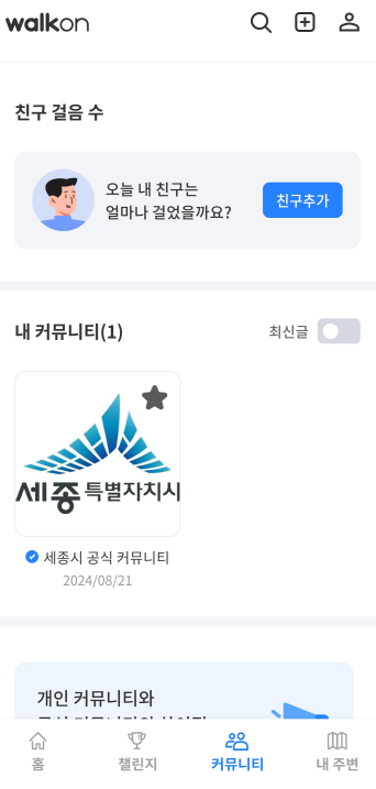 1. 일단 회원가입 후 챌린지를 검색해서 참여합니다. 워크온은 지역을 기반으로 하는 서비스와 이벤트를 운영하기 때문에 거주지역/활동지역을 인증하셔야 합니다. 지역 인증은 행정 구역(시/군/구) 단위로 가능합니다. 인증하실 때 워크온 앱 위치 권한을 "항상 허용"으로 설정하고, "정확한 위치 사용"도 선택해야 합니다.