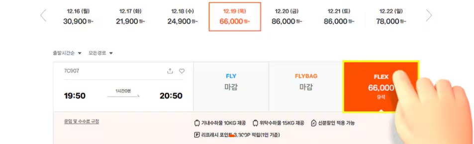 1. 운임 선택 시, FLEX 운임 선택하세요.