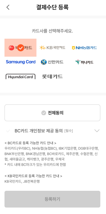3. 카드등록을 해볼게요