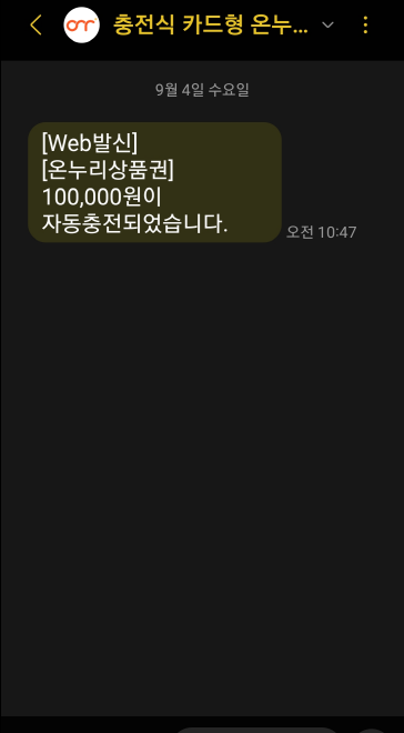 이렇게 문자로 충전되었음을 안내합니다.