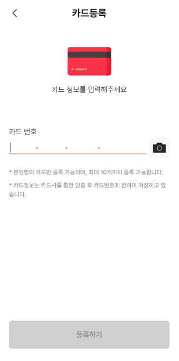 - 카드 한 개만 등록 가능한 게 아니라 최대 10개까지 등록 가능합니다.