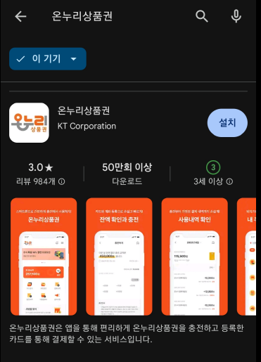 1. 자 온누리상품권 앱을 다운로드하으세요